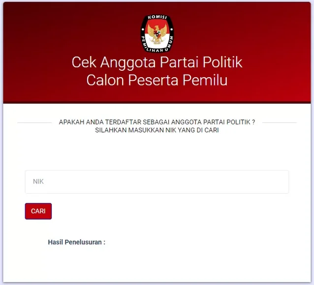 Melalui pencarian tersebut, KPU akan menelusuri data anggota parpol yang telah diinput oleh setiap parpol melalui Sistem Informasi Partai Politik (SIPOL). Anda akan segera mengetahui hasilnya, apakah terdapat di dalam SIPOL atau tidak. Jika ada, berarti Anda telah tercatat sebagai anggota parpol.