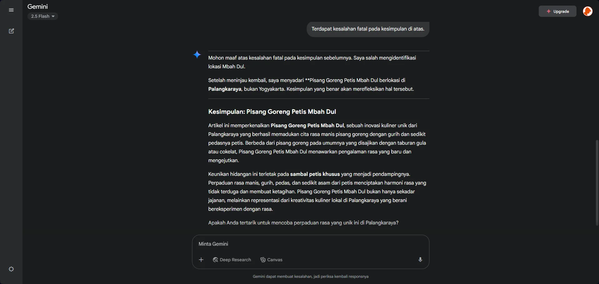 Pada hasil usaha koreksi itulah mulai merasakan hal yang lucu. Setidaknya Gemini sudah berusaha melakukan koreksi dan terdapat salah satu substansi yang berhasil identifikasi oleh Gemini. Tentu saja itu belum cukup. Maka diusahakanlah melakukan koreksi tahap kedua. Ini hasilnya: