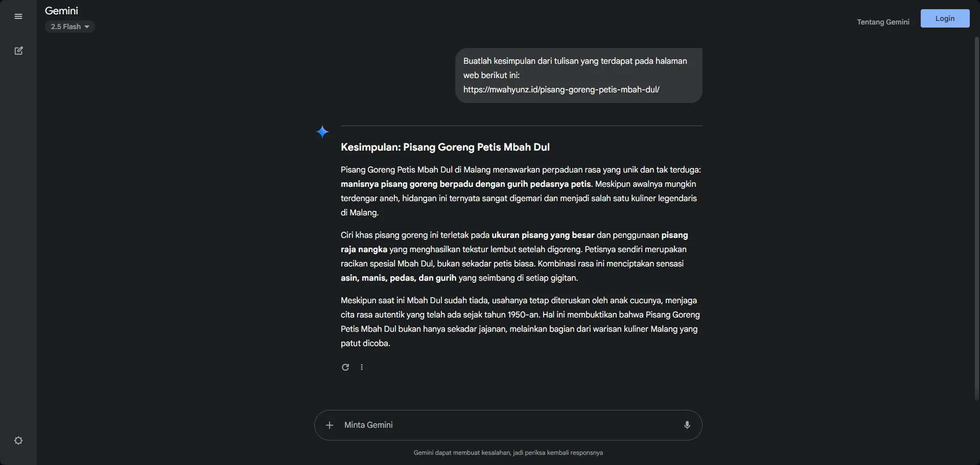 Asisten AI yang digunakan adalah Gemini. Perintah yang dipergunakan adalah sebagai berikut: