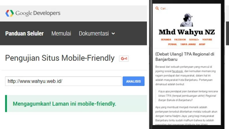 Ramah Seluler, demikian lebih kurangnya terjemahan literal frase mobile-friendly. Istilah yang jamak digunakan dalam pengembangan website/situs internet. Google pun sampai sediakan tool untuk melakukan pengujian, apakah sebuah situs memiliki desain yang mobile-friendly. Apalagi jaman sekarang, apa-apa banyak menggunakan ponsel, ya mungkin mau tak mau kalau bikin situs/media website ya harus ramah seluler.