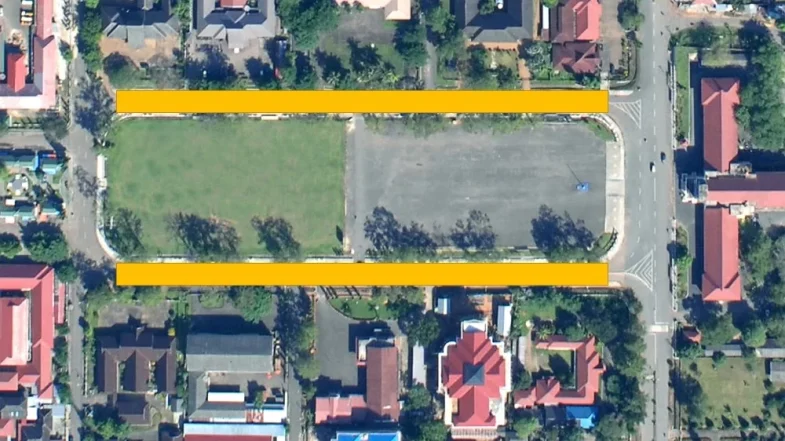 - Ruas jalan sisi timur dan barat Lapangan Murjani seluruhnya akan terlarang untuk kendaraan bermotor (roda berapapun). Demikian pula halnya dengan bagian dalam lapangan Murjani.