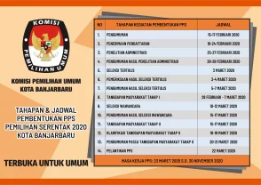 Rabu, 23 September 2020, Kota Banjarbaru akan laksanakan Pemilihan Wali Kota dan Wakil Wali Kota