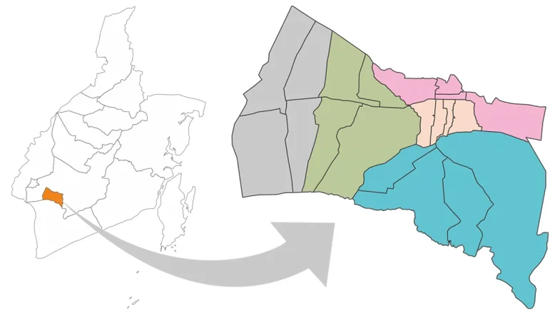 - Gambar peta wilayah administrasi daerah provinsi/kabupaten/kota yang disediakan di sini hanya merupakan gambaran umum yang ketepatannya tidak dijamin 100%. Karenanya, gunakanlah secara bijak sesuai dengan kepentingan.