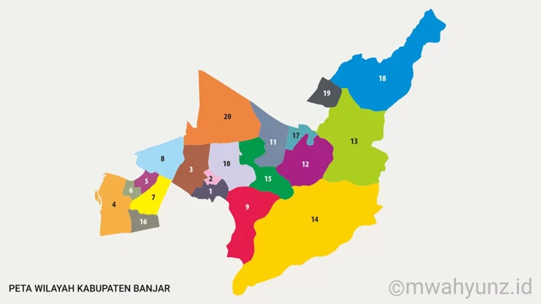 Silakan unduh/download gambar peta wilayah administrasi Kabupaten Banjar dalam format vektor. Gambar yang disediakan adalah dalam jenis SVG (terkompresi) yang bisa digunakan pada beberapa aplikasi pengolah vektor.