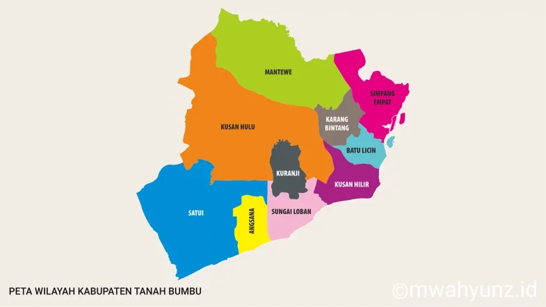 Silakan unduh/download gambar peta wilayah administrasi Kabupaten Tanah Bumbu dalam format vektor. Gambar yang disediakan adalah dalam jenis SVG (terkompresi) yang bisa digunakan pada beberapa aplikasi pengolah vektor.