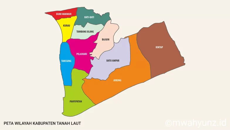 Silakan unduh/download gambar peta wilayah administrasi Kabupaten Tanah Laut (Tala) dalam format vektor. Gambar yang disediakan adalah dalam jenis SVG (terkompresi) yang bisa digunakan pada beberapa aplikasi pengolah vektor.